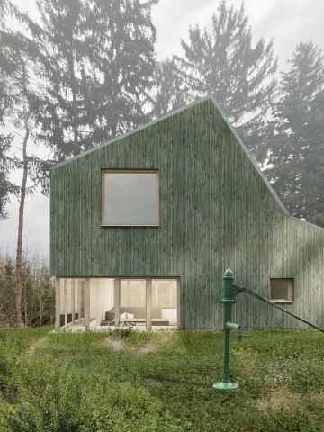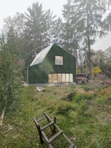 Projekt si hraje s analogiemi prvků charakteristických pro původní chatu. Dochází k jejich redukci a zároveň zesílení. Klíčovými elementy, které návrh transformuje, jsou pásová okna, zelená barva, výrazný sokl a klasická silueta. Výsledkem je kompaktní, jednoduchá a pokorná stavba. Přesvědčivé kompozice s velkorysými okny potvrzují aktuální dobu vzniku, ale nepopírají identitu chatičky. Analogie roztomilosti.