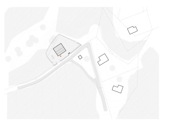 Jedním z důležitých témat návrhu je propojení s okolím. Díky zapuštění objektu do mírného svahu vzniká na jeho západní straně charakteristický moment, kdy pracovní deska v kuchyni navazuje na výšku terénu. Rohové okno poskytuje unikátní perspektivu, kdy člověk může zblízka pozorovat přírodu či bylinkovou zahrádku před oknem.