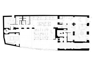 Členitou dispozici využíváme pro práci s různými typy sezení: kromě degustačního stolu také vysoké sezení, lavici a drobnější stoly v duchu italských bister.