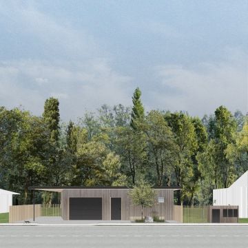 Vzrostlý les na jihovýchodní hranici je důležitou kvalitou takřka ideálně orientovaného pozemku, na němž si mladá, sportovně založená rodina přála navrhnout jednopodlažní dřevostavbu v nízkoenergetickém standardu.