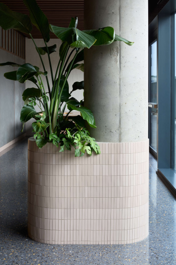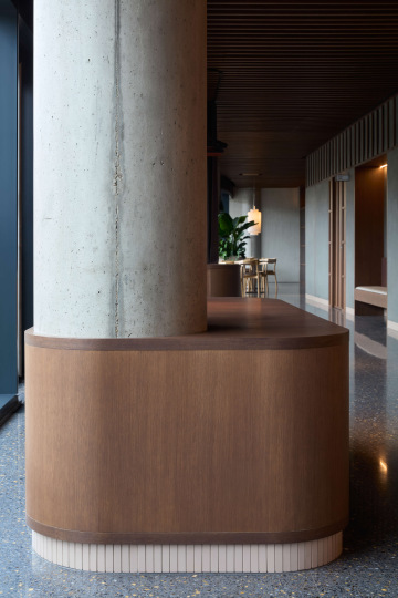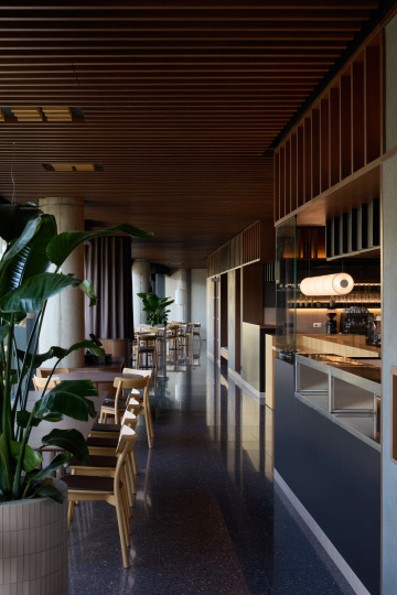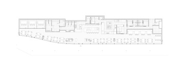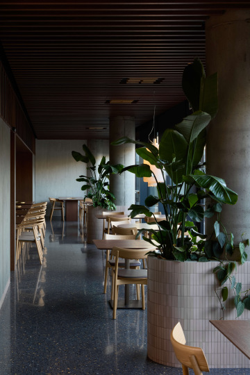 Prostor je traktován a přirozeně členěn pomocí květníků a různých typů sezení tak, aby vznikla rozmanitá škála prostředí – od otevřených částí podporujících společenský kontakt až po uzavíratelné salonky poskytující potřebnou intimitu.
