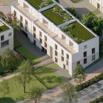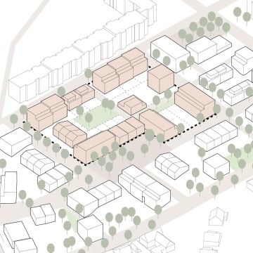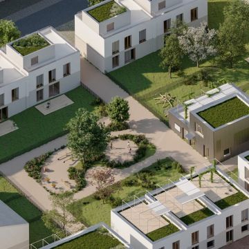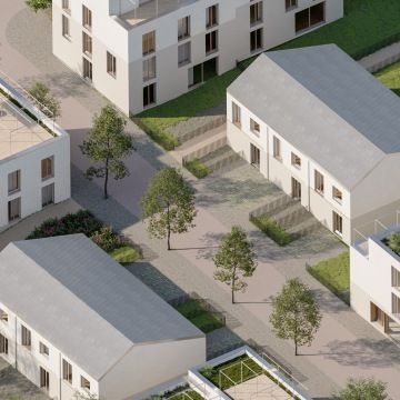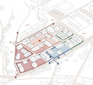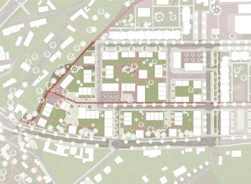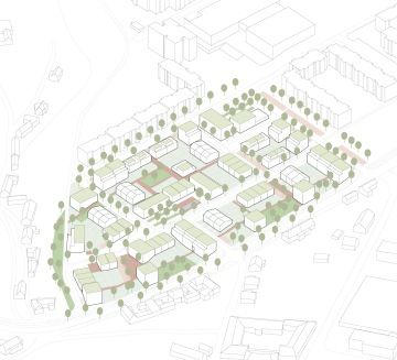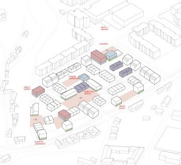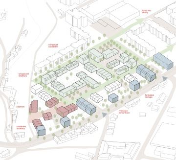 Sociální udržitelnost zajišťuje rozmanitý mix stavebních typologií, ale i citlivá integrace různých typů veřejného bydlení i vybavenosti do osnovy souboru.