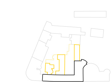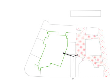 Zachováváme konstrukce, které tvoří strukturu bloku a vizuální identitu místa. Odstraňujeme přístavby ve vnitrobloku, abychom zde uvolnili prostor pro společný dvůr a zahradu. Zároveň kvůli racionálnímu řešení podzemních garáží dochází k demolici jižní části hotelu, která je posléze nahrazena kontextuálním objektem v původní pozici.