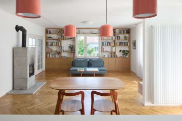 Rekonstrukce v centru Roztok byla velmi specifickou úlohou: historická vila prošla zásadní přestavbou teprve v roce 2015, kdy přibyly výrazné cortenové novotvary. Relativně brzy poté ovšem změnila majitele, kteří potřebovali uzpůsobit dům životu s malými dětmi. Naši roli ve stavebním vývoji jsme proto pojali jako jemné doplnění nové vrstvy a celkovou kultivaci – nikoli popření předchozí práce.